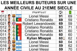 體育資訊12月02日訊 2025年接近尾聲,皇馬前鋒姆巴佩已經(jīng)在本年度打進了60粒進球,在21世紀自然年進球榜可以排到并列第6位。