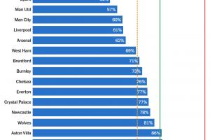 體育資訊12月2日訊 TA撰文統(tǒng)計25-26賽季英超各俱樂部預(yù)估的陣容成本比例,并將其與新的陣容成本控制線進(jìn)行對比。