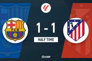 半場(chǎng)結(jié)束,巴薩暫1-1馬競(jìng)。
