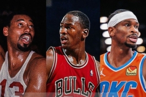 而在NBA歷史上,此前只有兩位球員在一個賽季中做到過30+得分場次占比80%及以上,他們是張伯倫(4次)、喬丹(86-87賽季)。