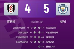 體育資訊12月03日訊 英超第14輪,曼城5-4擊敗富勒姆,曼城一戰(zhàn)丟4球,防守堪憂。