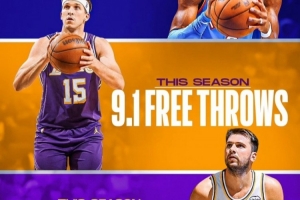 大家總是嘲笑哈登和SGA刻意制造罰球機(jī)會(huì),但現(xiàn)在是時(shí)候稱盧卡和奧斯汀·里夫斯為聯(lián)盟新的“罰球王”了。