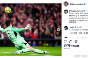 庫(kù)爾圖瓦社媒曬出撲救照片,配文:“在圣馬梅斯取勝絕非易事,而我們今天贏得干脆利落。這正是我們想要繼續(xù)前進(jìn)的道路!”
