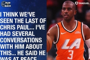前NBA球員路威在《Run It Back》節(jié)目中談到此事,他說:“我認為我們已經(jīng)看到了克里斯·保羅的最后一戰(zhàn)……我和他談過幾次關(guān)于這個問題……他說他已經(jīng)心平氣和了?!?/p>