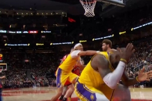 GIF-詹姆斯頭部被擊中,但裁判沒吹