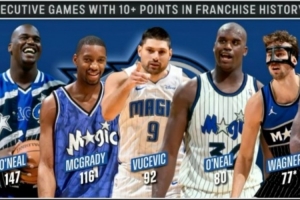 連續(xù)10+場(chǎng)數(shù)榜:奧尼爾147、麥迪116、武切維奇92、奧尼爾80、小瓦格納77、班凱羅73