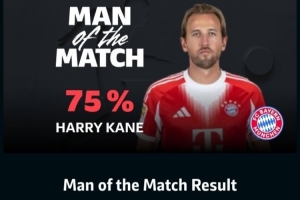 本場(chǎng)比賽,凱恩在替補(bǔ)登場(chǎng)的情況下完成帽子戲法。以75%的票數(shù)力壓隊(duì)友萊默爾(10%)、奧利塞(6%)、斯坦尼西奇(2%)和基米希(1%)奪得全場(chǎng)最佳。