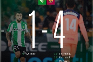 體育資訊12月7日訊 本輪西甲焦點(diǎn)戰(zhàn),巴薩上半場4-1反超貝蒂斯,數(shù)據(jù)統(tǒng)計(jì)顯示西甲聯(lián)賽歷史僅有4支客隊(duì)在皇家貝蒂斯主場上半場進(jìn)球數(shù)達(dá)到4+: