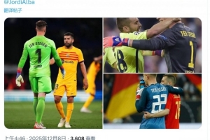 體育資訊12月8日訊 特爾施特根更新社媒動態(tài),祝福結束職業(yè)生涯的老隊友阿爾巴。