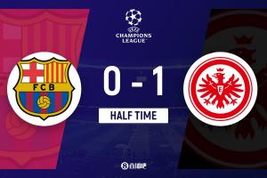 體育資訊12月10日訊 北京時間12月10日04:00,歐冠聯(lián)賽階段第六輪巴薩迎戰(zhàn)法蘭克福的比賽在諾坎普球場進行,上半場萊萬包抄破門無效,克瑙夫單刀破門,馬丁抽射造險,半場結(jié)束,巴薩0-1法蘭克福。