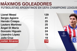 體育資訊12月10日訊 在本輪歐冠馬競(jìng)3-2擊敗埃因霍溫的比賽中,阿爾瓦雷斯破門(mén)。這也是他在歐冠第19球,以下為阿根廷球員在歐冠射手榜: