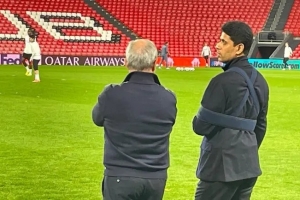 體育資訊12月10日訊 《馬卡報》報道,巴黎圣日耳曼主席納賽爾手打石膏,看球隊訓練。