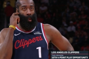 快船客場(chǎng)VS火箭,第四節(jié)哈登打進(jìn)3+1。轉(zhuǎn)播方統(tǒng)計(jì),哈登本賽季已經(jīng)10次3+1,領(lǐng)跑全聯(lián)盟。