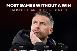 據(jù)媒體統(tǒng)計,狼隊本賽季英超前16輪比賽不勝,差1場追平謝菲聯(lián)2020-2021賽季創(chuàng)造的英超開局連續(xù)不勝紀(jì)錄。狼隊下場聯(lián)賽將對陣布倫特福德。
