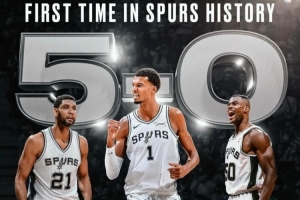 很難想象,在馬刺輝煌的球隊歷史上,竟從未有過5連勝開局,而那個夜晚,年僅21歲的文班亞馬,用27分、18個籃板、6次助攻和5次封蓋的華麗數(shù)據(jù),率隊107-101力克熱火,將戰(zhàn)績改寫為5勝0負(fù),就此書寫新的歷史。