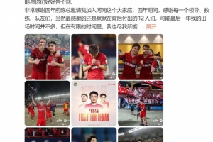 最后還是很高興這四年能在河南完成個(gè)人河南百場,也很高興打進(jìn)了河南的第1000粒進(jìn)球,唯有在足協(xié)杯上留有遺憾。但我相信,河南足球一定會(huì)有更輝煌的明天。