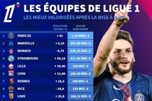 體育資訊12月15日訊 德轉(zhuǎn)更新了法甲球員身價情況,也列出了法甲各隊身價榜,巴黎全隊身價比第二到第四名之和還多。