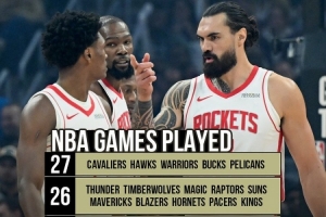 “火箭目前僅打22場,聯(lián)盟最少,而有5支球隊打了27場比賽。”
