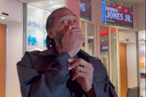 賽后,萊昂納德接受了記者采訪。當被攝像機明亮的燈光照到時,他說道:“你在拍電影嗎?把那爛玩意兒關(guān)掉。Shit?!?/p>