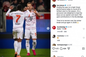 體育資訊12月22日訊 德甲第15輪,拜仁客場(chǎng)4比0擊敗海登海姆。其中凱恩打進(jìn)1球。賽后,凱恩更新社媒慶祝2025收官戰(zhàn)勝利,并展望2026。