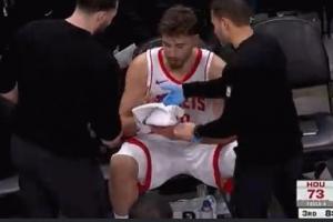 GIF-申京手撞到籃板上有點受傷