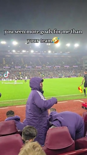 下半場在替補(bǔ)席上,B費遭到場邊維拉球迷的嘲諷,他笑著站起來與維拉球迷“互動”。