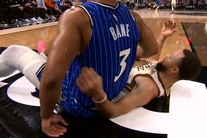 GIF-另一個(gè)角度!貝恩撞翻庫里!魔術(shù)反擊2+1!