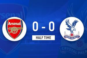 上半場補時2分鐘。半場戰(zhàn)罷,阿森納0-0水晶宮。