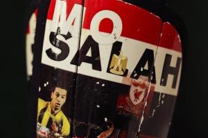 板上印有他在埃及國家隊(duì)穿10號球衣的圖案,以及利物浦主場通道里“這里是安菲爾德”的著名logo。