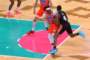 GIF-雷霆挑戰(zhàn)多特這個防守犯規(guī),但腿部有接觸,挑戰(zhàn)失敗