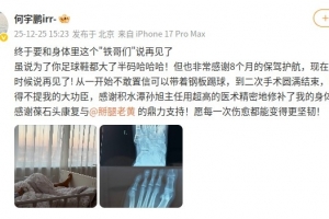 何宇鵬在社媒寫道:“終于要和身體里這個‘鐵哥們’說再見了,雖說為了你足球鞋都大了半碼哈哈哈!但也非常感謝8個月的保駕護航,現(xiàn)在,是時候說再見了!”