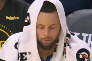 GIF-勇士失誤被打反擊2+1 庫(kù)里在替補(bǔ)席無(wú)奈