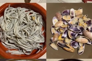 菜單堪稱一場(chǎng)真正的珍饈盛宴,帝王蟹、白灼白蝦、三種做法的紅蝦、幼鰻砂鍋、烤蛤蜊、烤豌豆、何塞利托火腿配黑松露、托薩蘇汁配魚(yú)子醬的加利西亞蛤蜊、烤龍蝦、皮爾皮爾醬多寶魚(yú)、炭烤牛排以及作為甜點(diǎn)的手工潘妮托妮。