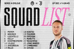 體育資訊12月27日訊 北京時(shí)間明天凌晨,尤文將在意甲第17輪比賽中客場(chǎng)對(duì)陣比薩,尤文公布了此役的球員名單??兹!⒖ò蜖?、魯加尼、弗拉霍維奇缺席。