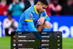 此外,狼隊在18輪可爭取的54個積分中只拿到2分,也是英超歷史新低。聯(lián)賽不到半程,他們已經(jīng)落后安全區(qū)16分。