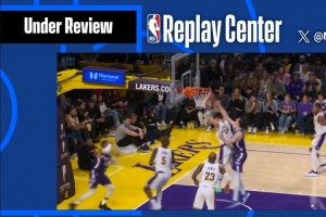 GIF-湖人挑戰(zhàn)東契奇出界成功,雷諾推人犯規(guī)